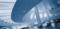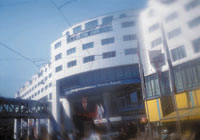 Das Kongresszentrum Basel (li.: Front; re.: Foyer): Hier fand der aufsehenerregende “48-Stunden-Test” statt.